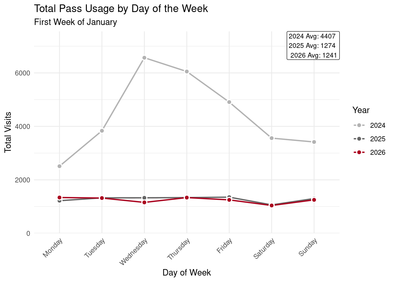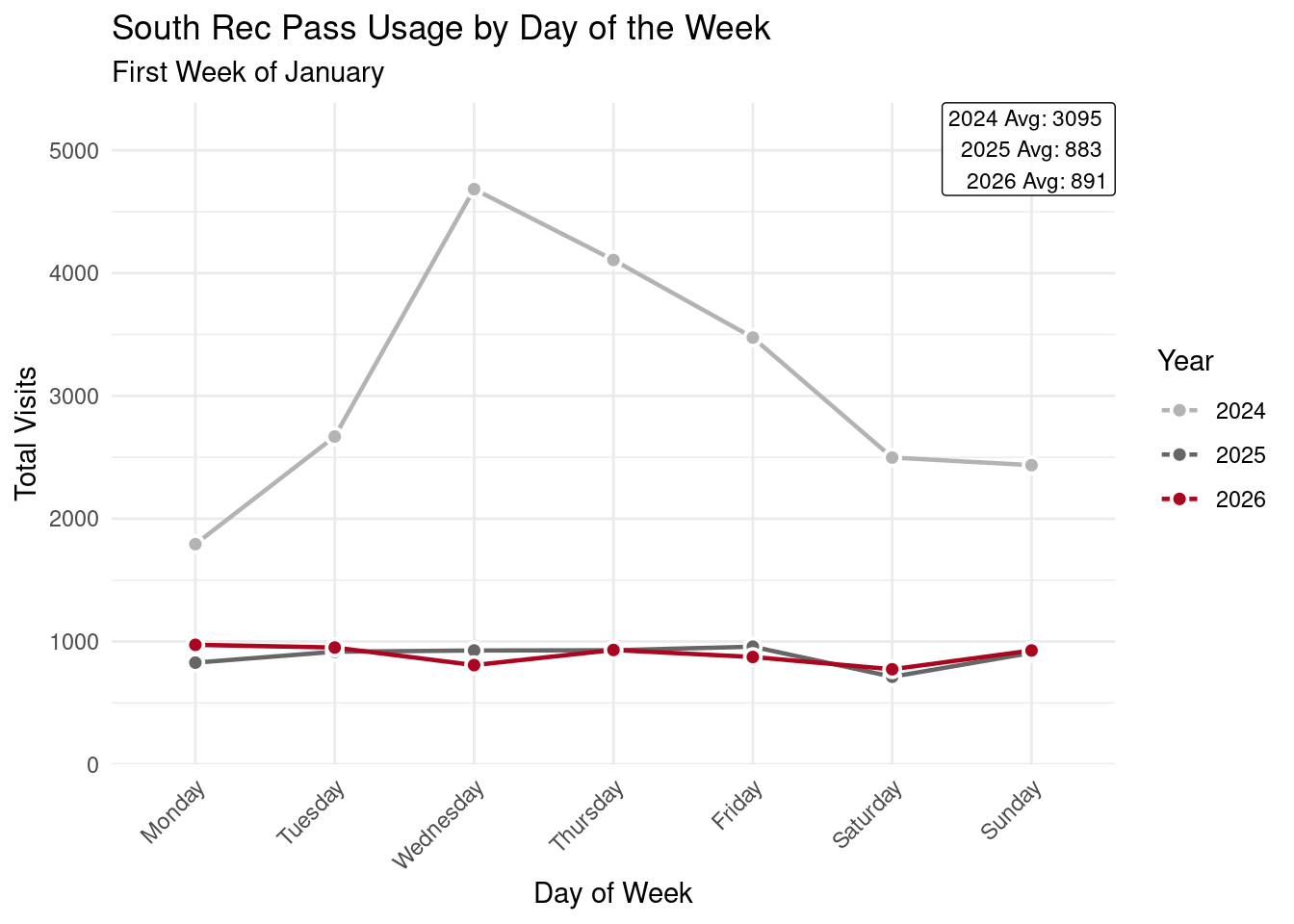 - In 2024, classes began a week earlier, explaining the spike in traffic for 2024.